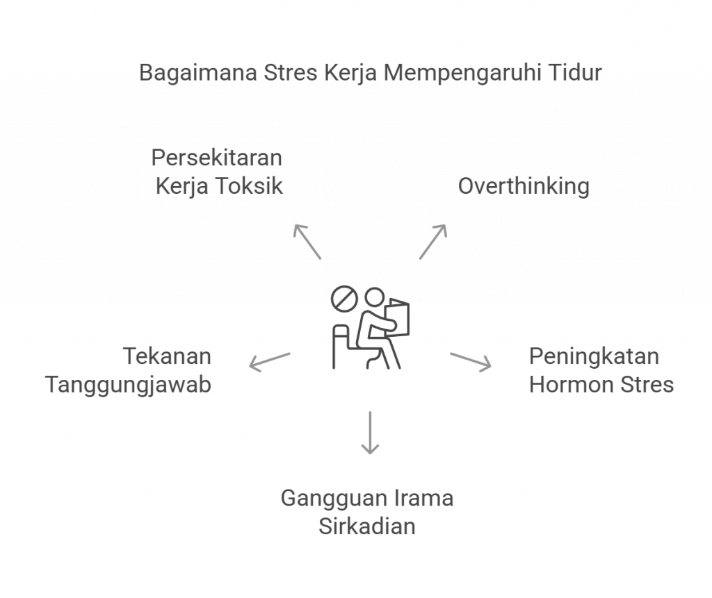 Hubungan antara stres kerja dan susah tidur adalah seperti kitaran yang tidak berkesudahan. Stres kerja yang berlebihan boleh mencetuskan pelbagai tindak balas fisiologi dan psikologi yang mengganggu pola tidur yang sihat. Berikut adalah beberapa cara bagaimana stres di tempat kerja boleh menyebabkan anda terjaga hingga lewat malam: